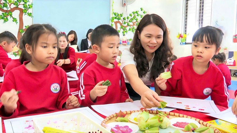 Cô và trò trường Mầm non Ích Hậu thể hiện tài năng tại Hội thi Giáo viên dạy giỏi cấp trường