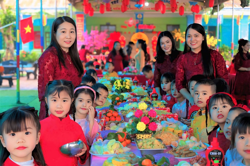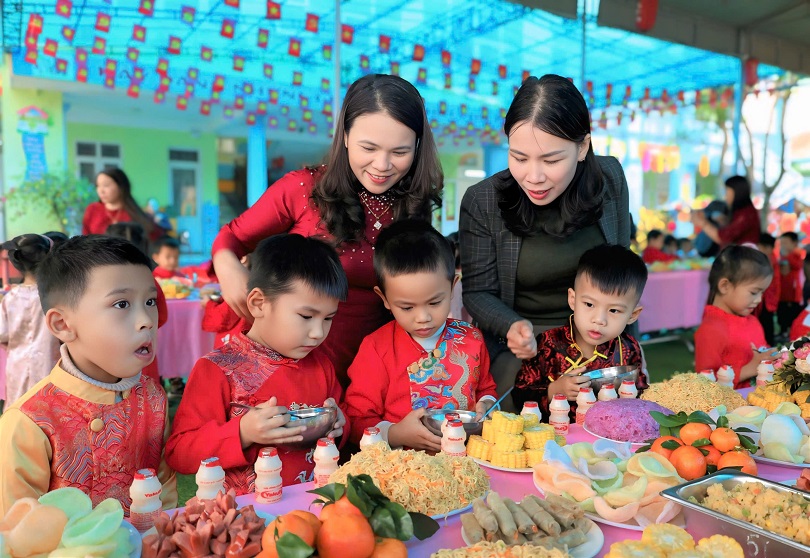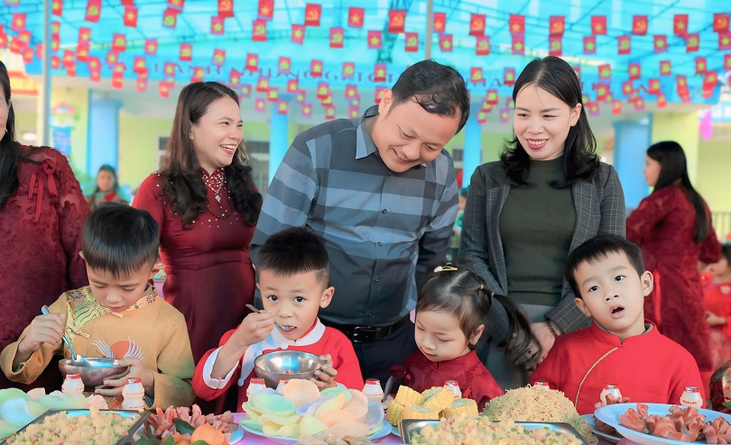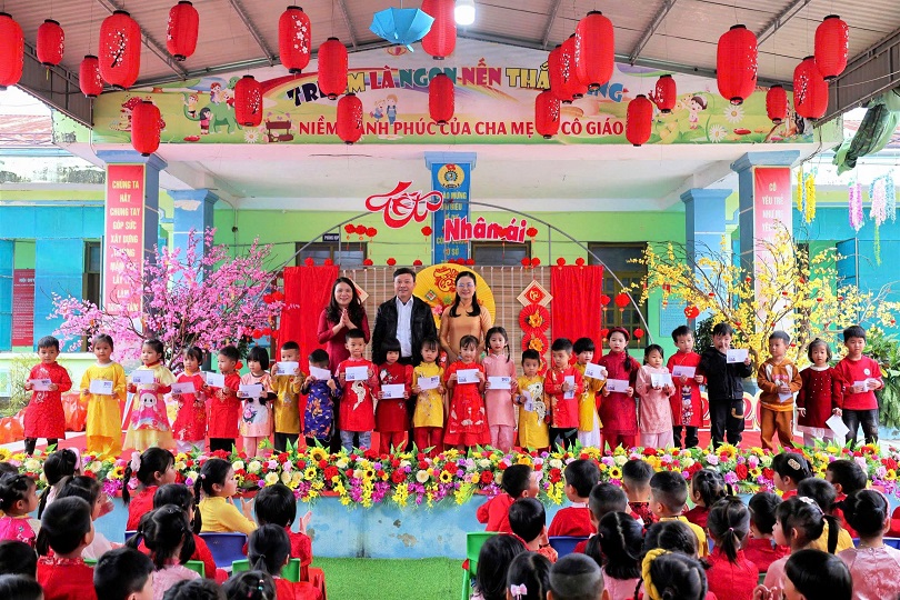 Không chỉ được trao quà, các cháu, cô giáo, phụ huynh và quý vị đại biểu còn được thưởng thức những tiết mục văn nghệ sôi động, hấp dẫn, vui tươi mừng Đảng - mừng Xuân, mừng quê hương, địa phương đổi mới. Cùng nhau dùng bữa tiệc Buffet đẹp mắt, ngon miêng.