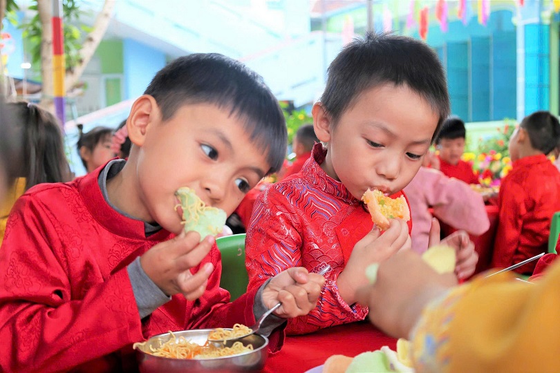 Đa dạng món ăn, được các cô chế biến cẩn thận, đảm bảo dinh dưỡng, ATTP.