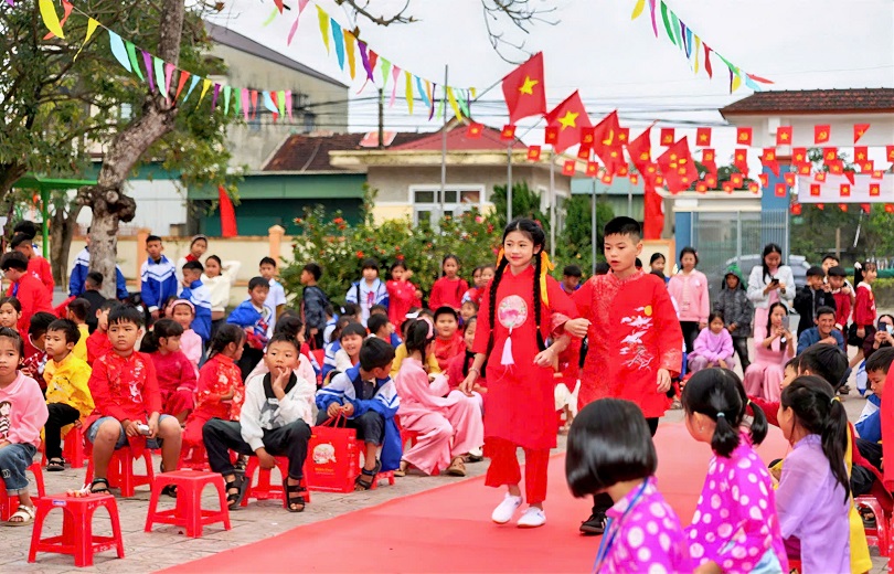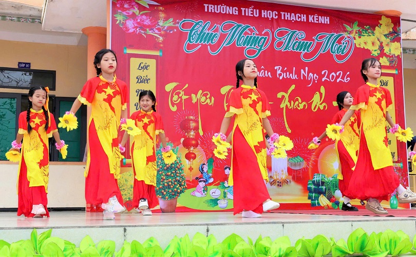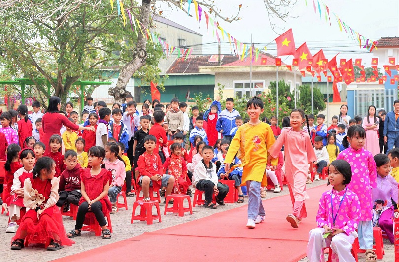 Hoạt động với nội dung phong phú, hấp dẫn như: Văn nghệ “mừng Đảng - mừng Xuân” mang đến một không gian rộn ràng, thể hiện tình yêu quê hương, đất nước và niềm tự hào của tuổi thơ Việt Nam. Trình diễn trang phục ngày Tết, chủ đề “Sắc Xuân” với những bộ trang phục độc đáo, phù hợp, bước đi tự tin, nụ cười hồn nhiên, góp phần tạo nên bức tranh mùa Xuân rực rỡ, ấm áp tại mái trường thân yêu.