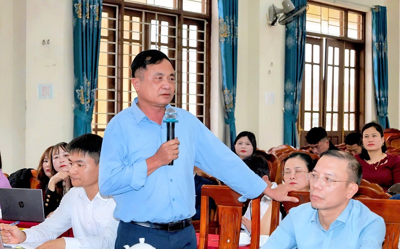 Đồng chí Chủ tịch UBMTTQ xã Đặng Quang Bắc phát biểu tại hội nghị.