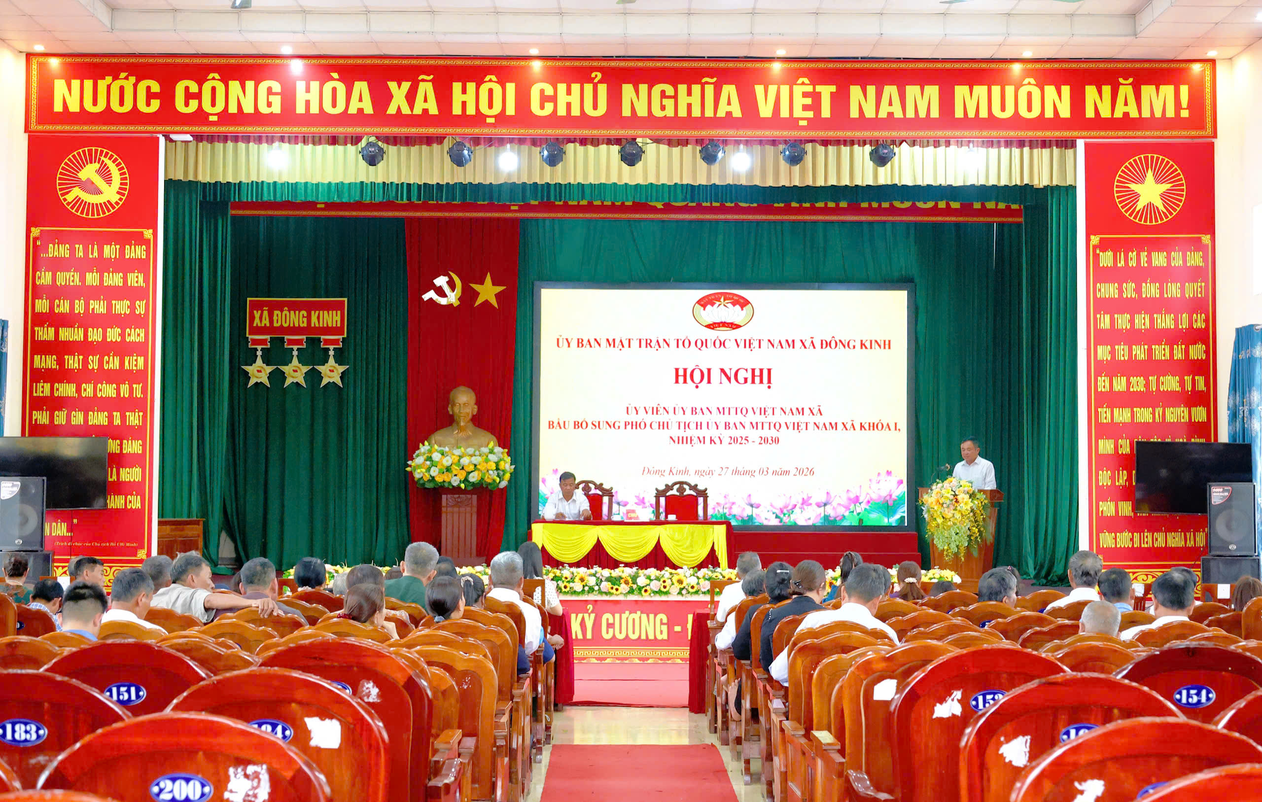 Quý I năm 2026, Ủy ban MTTQ xã Đông Kinh và các tổ chức chính trị - xã hội đã bám sát nhiệm vụ chính trị của địa phương, chủ động xây dựng kế hoạch, triển khai nhiều hoạt động thiết thực, hiệu quả. Ban Thường trực Ủy ban MTTQ xã đã tổ chức các bước hội nghị hiệp thương; lấy ý kiến nhận xét, tín nhiệm của cử tri nơi cư trú; tổ chức 37 hội nghị tiếp xúc cử tri, vận động bầu cử đối với người ứng cử đại biểu HĐND các cấp; vận động Nhân dân phát huy quyền làm chủ, tham gia góp ý, bảo đảm dân chủ, khách quan, đúng quy định. Đồng thời, đẩy mạnh tuyên truyền, vận động Nhân dân tham gia Ngày hội bầu cử Quốc hội khóa XVI và HĐND các cấp nhiệm kỳ 2026-2031, đạt kết quả thành công tốt đẹp.