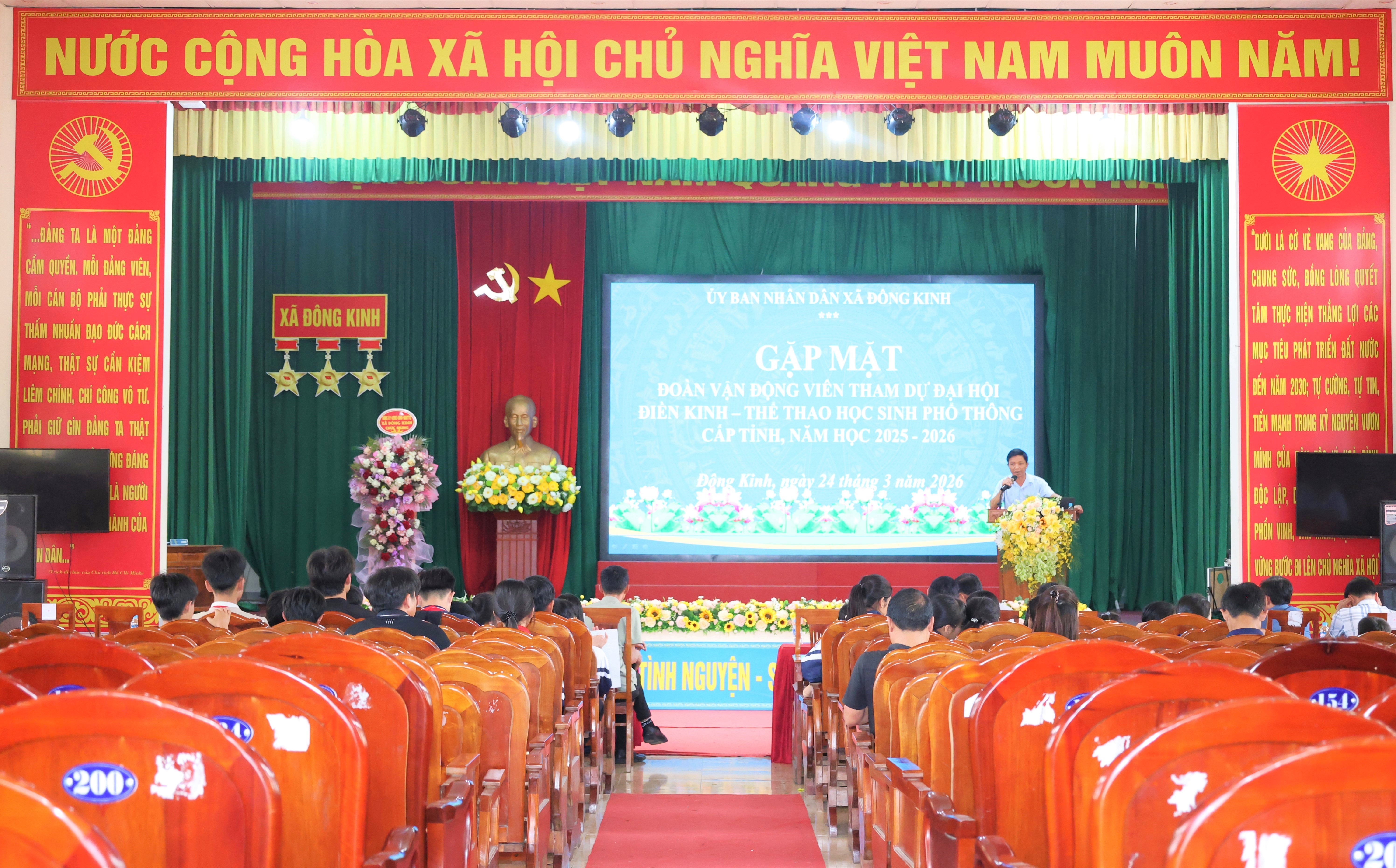 Phát biểu tại buổi gặp mặt, đồng chí Phó Chủ tịch UBND xã Trần Văn Hương ghi nhận và biểu dương tinh thần nỗ lực, ý chí rèn luyện của các em học sinh trong suốt thời gian qua. Đồng thời nhấn mạnh, việc tham gia Đại hội không chỉ là cơ hội để các em thể hiện tài năng, mà còn là dịp học hỏi, giao lưu, tích lũy kinh nghiệm thi đấu, góp phần nâng cao thể chất và tinh thần đoàn kết.